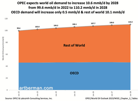 And if OPEC’s oil demand forecasts are correct, it will get worse in the next five years. The cartel expects fossil fuel consumption to grow about 10% by 2028 in the emerging market countries (mainly China and India) while the OECD (wealthy) countries keep burning as much they do now.
