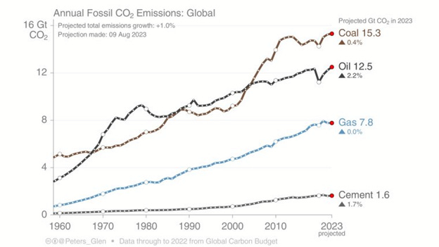 The reason isn’t complicated. Despite all kinds of efforts, global carbon emissions are still climbing.